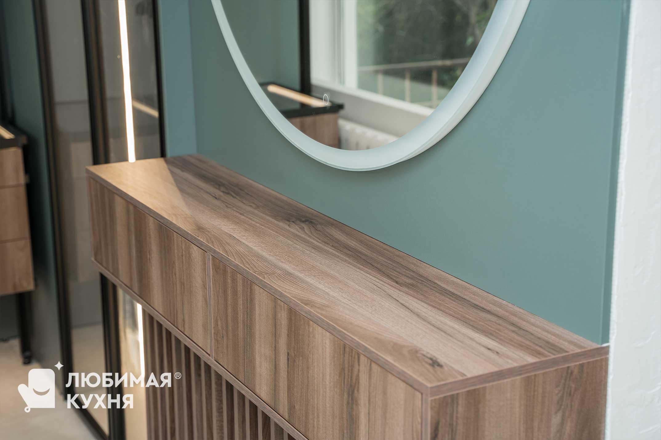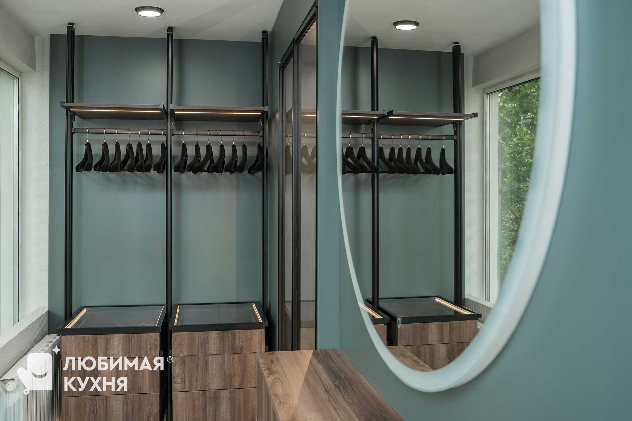 Стильная гардеробная, невероятно вместительная и продуманная до мелочей. В полках предусмотрена подсветка, для отличного обзора вещей даже без основного освещения. Системы хранения — полки,ящики,сетки, все продумано для комфортного расположения различных вещей вашего гардероба.